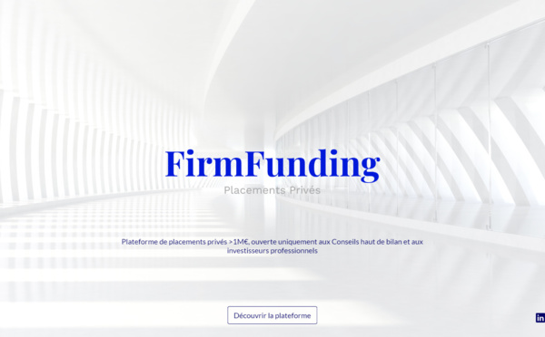 Avec une levée de fonds de 1 M€, FirmFunding, première plateforme digitale permettant le financement de croissance des PME par le financement obligataire, renforce son capital. FirmFunding accueille le family office Fiblac, Pauline Duval, directrice générale du Groupe Duval, Hugues Le Bret,...