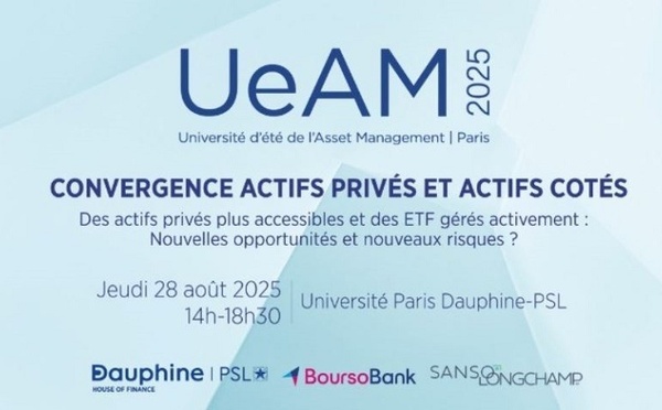 La House of Finance, BoursoBank et Sanso Longchamp AM organisent la 12e édition de l'Université d'été de l'Asset Management, le jeudi 28 août à l'Université Paris Dauphine-PSL sur le thème "Convergence Actifs privés et Actifs cotés. Des actifs privés plus accessibles et des ETF gérés activement :...