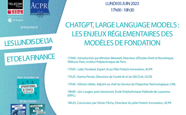 En 2023, les lundis de l’IA et de la finance organisés par Télécom Paris et l’ACPR reprennent pour un nouveau cycle de webinaires croisant les points de vue des régulateurs, des chercheurs et des industriels sur les usages et la réglementation de l’IA en finance. Le prochain Lundi de l'IA aura lieu...