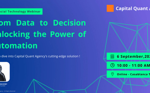 Capital Quant Agency, une Fintech innovante spécialisée dans les solutions d'analyse quantitative de pointe, est ravie d'annoncer son prochain webinaire intitulé " From Data to Decision Unlocking the Power of Automation ".  Cet événement en ligne aura lieu le Mercredi 6 Septembre 2023 à 10 h 00...